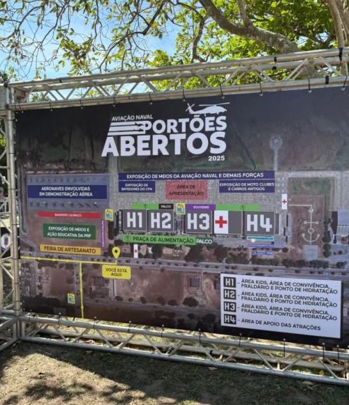 A Marinha do Brasil promoverá no próximo dia 21 de setembro, das 9h às 17h, o evento "Portões Abertos da Aviação Naval 2025", na Base Aérea Naval de São Pedro da Aldeia, localizada na Região dos Lagos do Rio de Janeiro. O evento tem entrada gratuita,