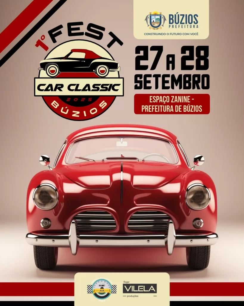 Armação dos Búzios se prepara para acelerar no túnel do tempo com o 1º Fest Car Classic, que acontece neste sábado (27) e domingo (28), na Escola de Artes Zanine, a partir das 9h. O encontro, promovido pela Prefeitura em parceria com os Amantes de Veículos Antigos (AVA), vai reunir máquinas que fizeram história e continuam encantando gerações.